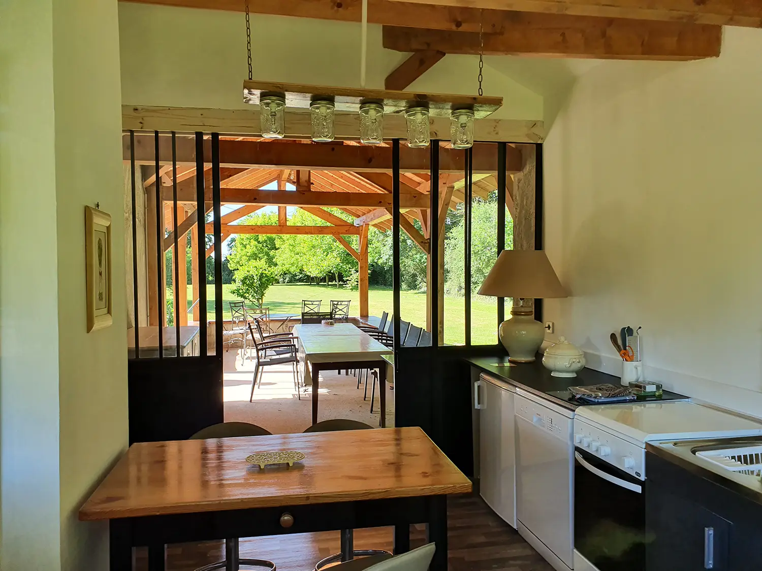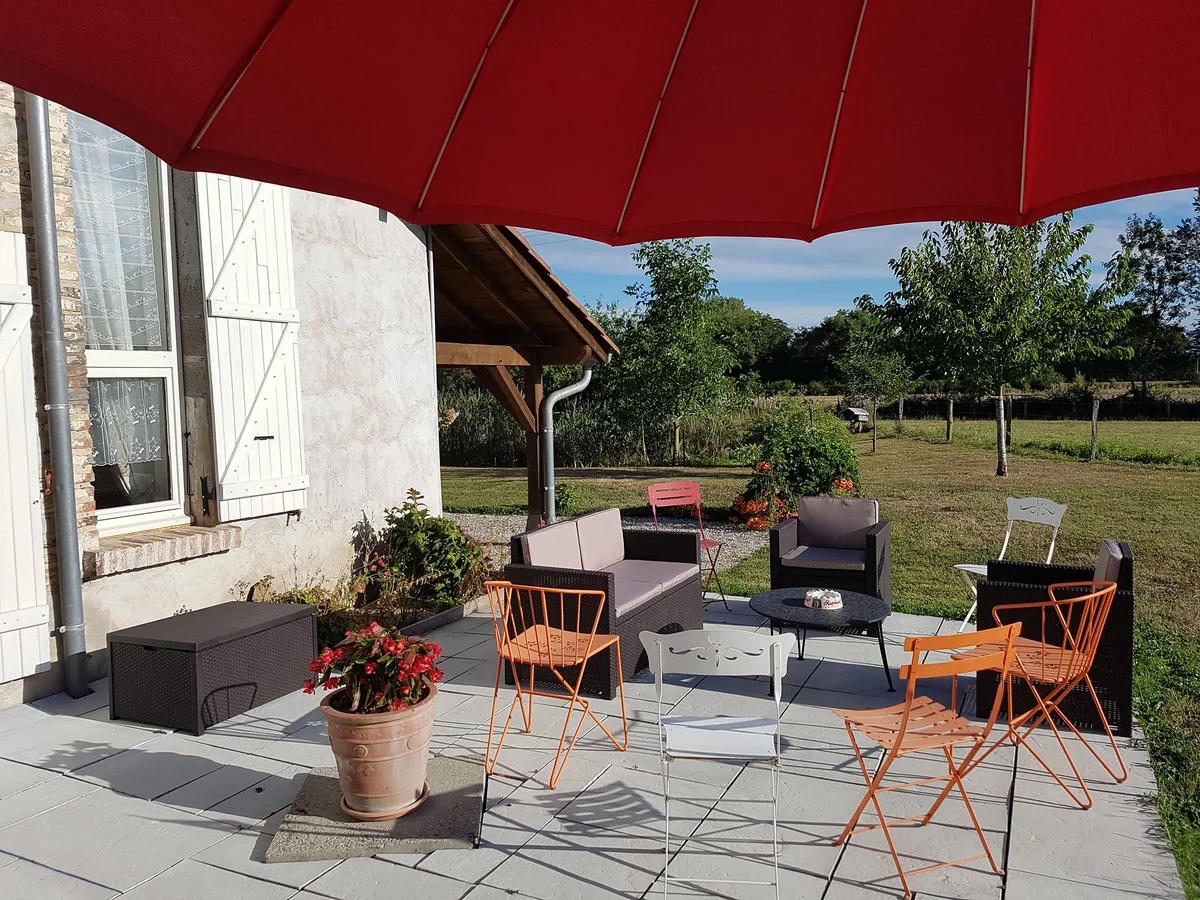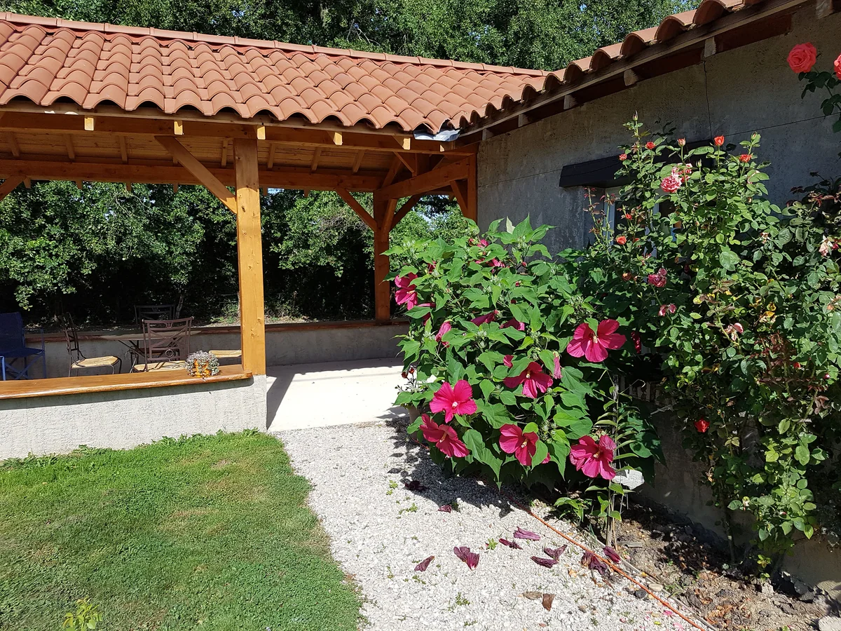Gîte de plein pied très coquet, comprenant une cuisine fonctionnelle, une terrasse, une chambre avec lit de 160 et télévision, d’une salle de bain avec WC.